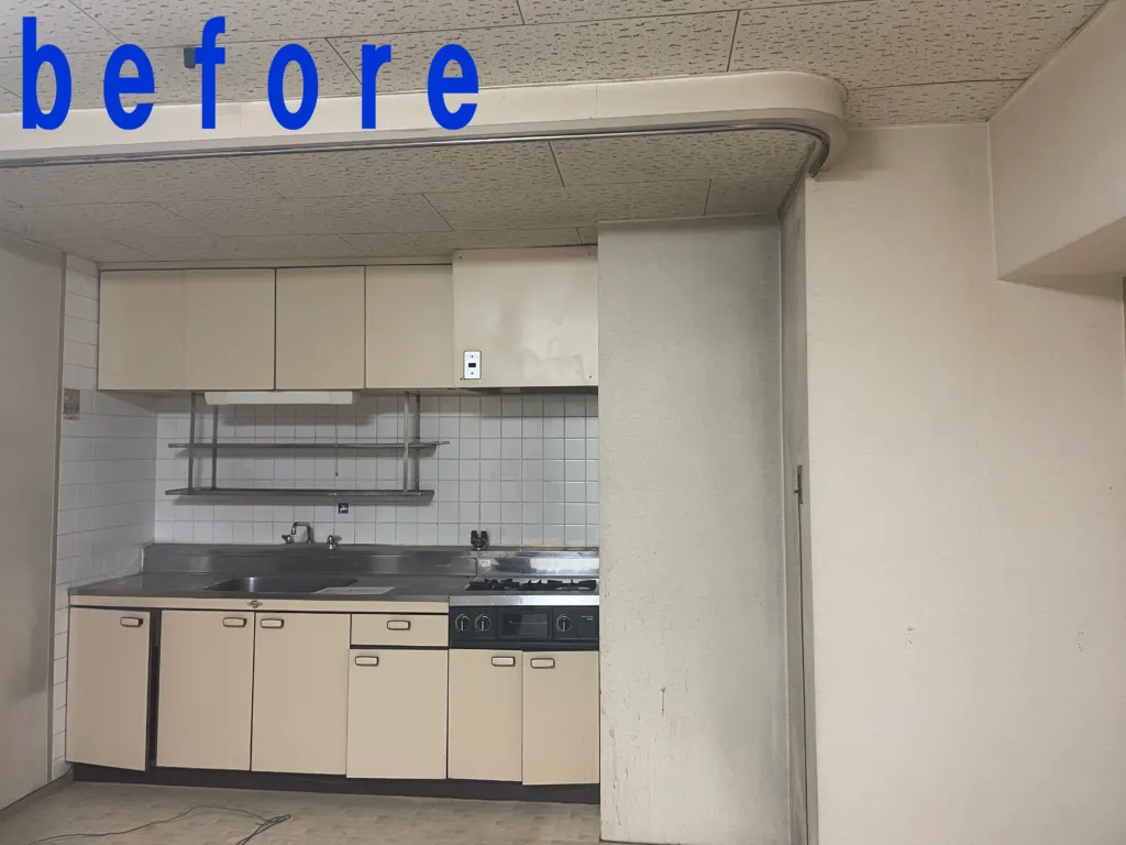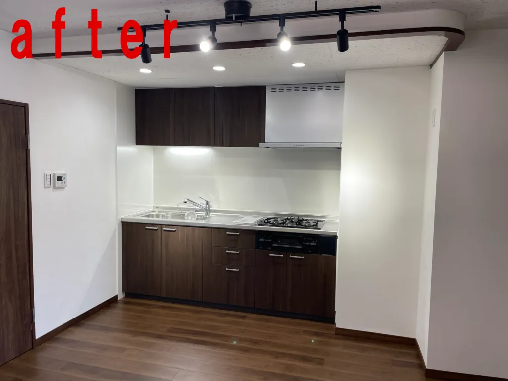 住所:大阪府豊中市 施工内容:マンション内装工事全般 使用材料:フローリング、クロス、浴室、キッチン、トイレ、その他